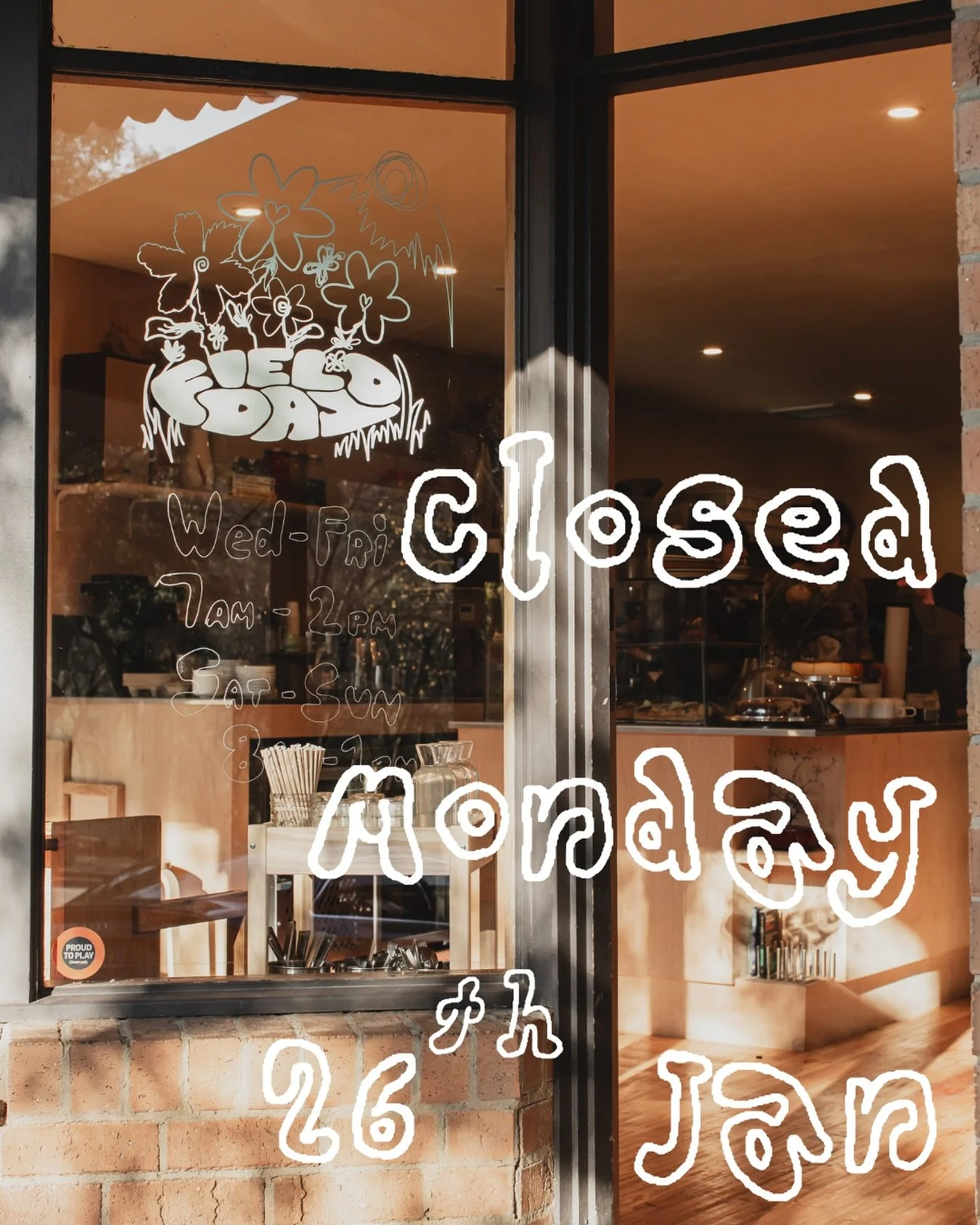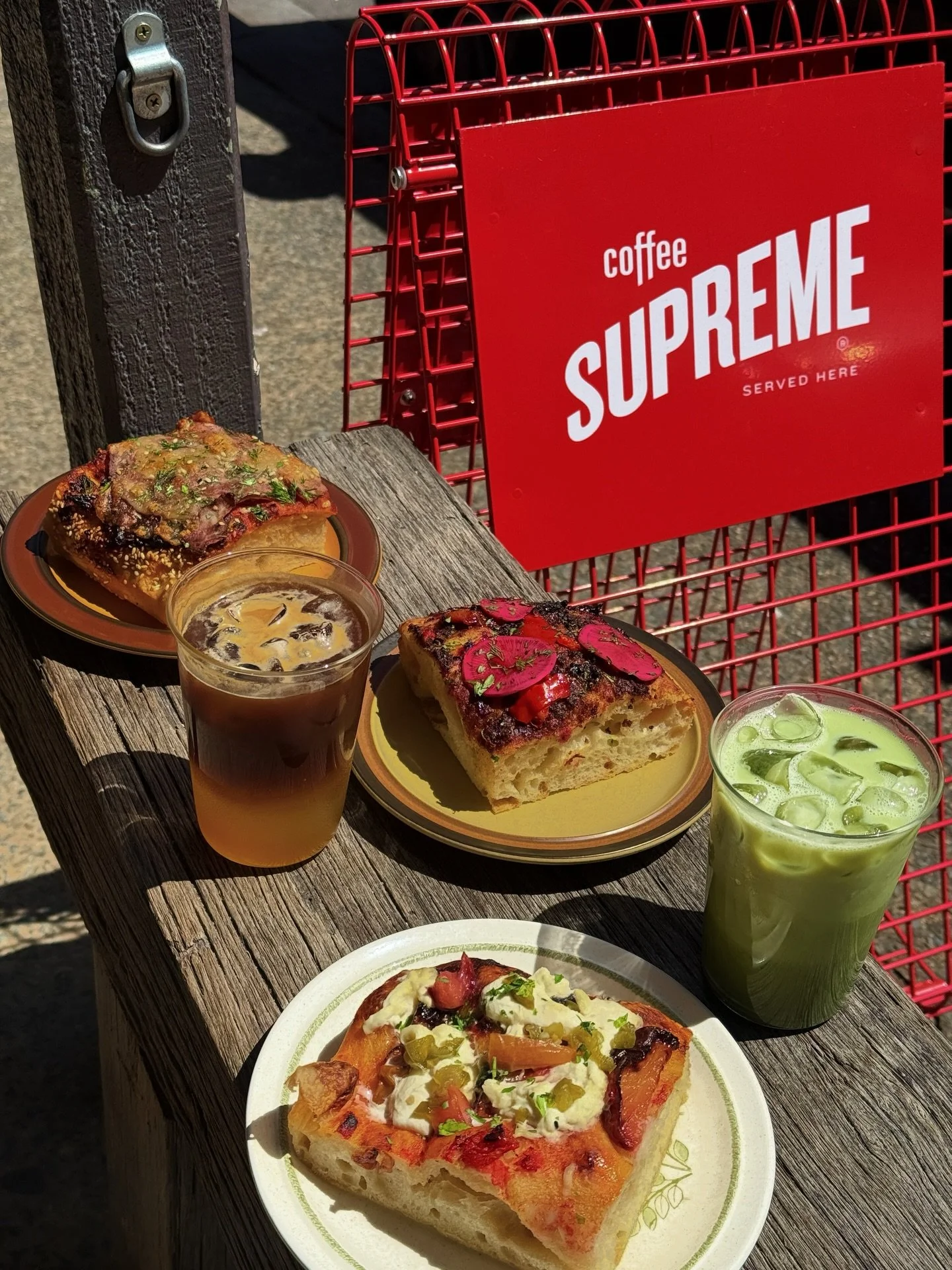 Coffee by Coffee Supreme. Retail treasures by Myers Market. Bread by Sourdo Bakehouse. In-house baked treats and food. No bookings required. Kindness essential.